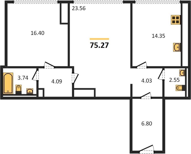 | 2-комнатная от 103.2 м2 | 75 000 176 руб. |