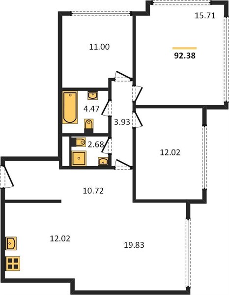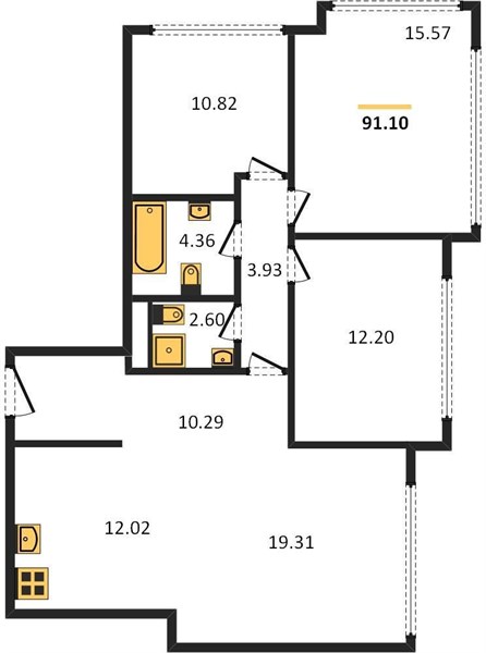 | 2-комнатная от 67.1 м2 | 15 902 700 руб. |