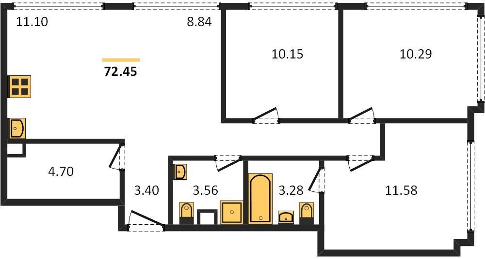 | 3-комнатная от 82.4 м2 | 33 370 908 руб. |