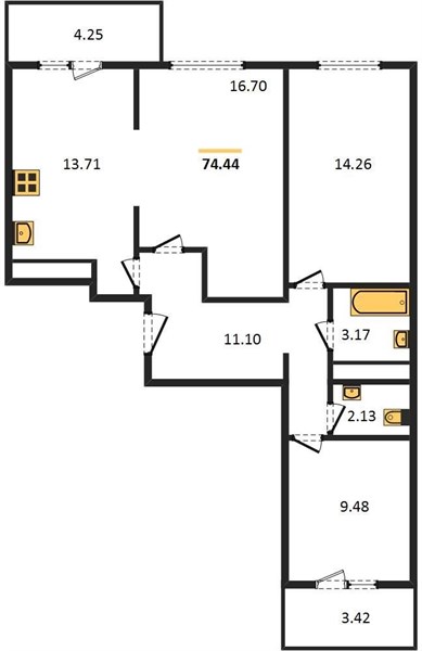 | 2-комнатная от 74.37 м2 | 12 913 161 руб. |