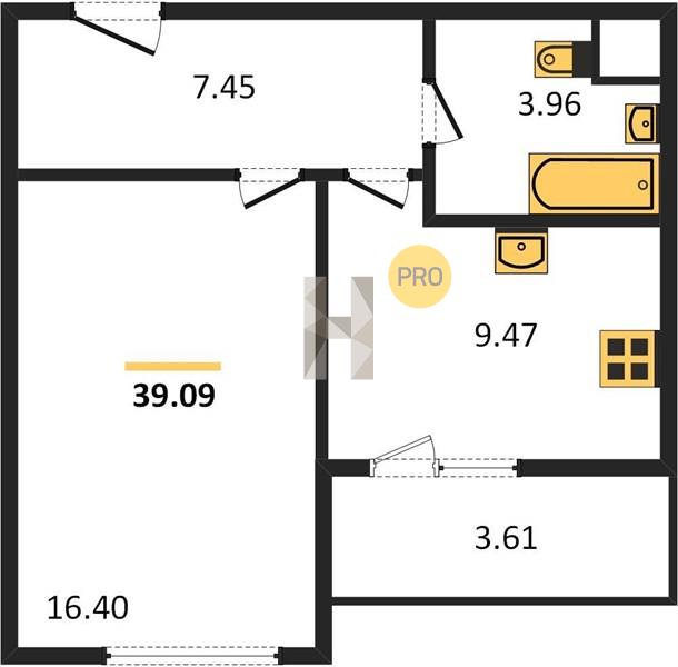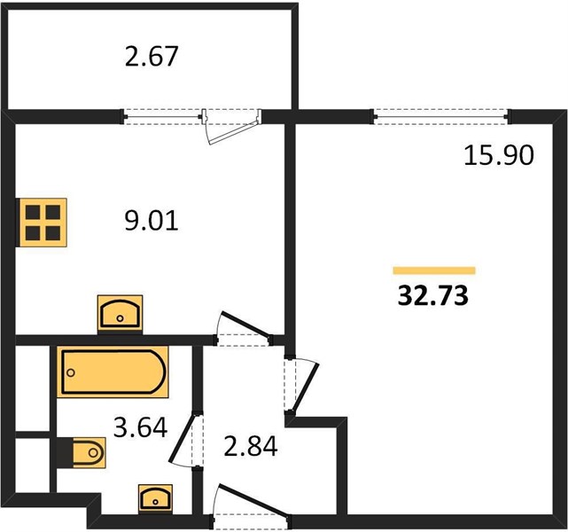 | 1-комнатная от 31.2 м2 | 14 628 677 руб. |
