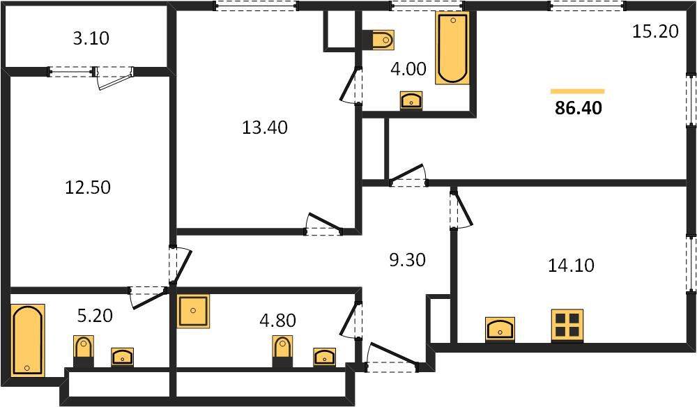 | 2-комнатная от 86.8 м2 | 75 008 463 руб. |